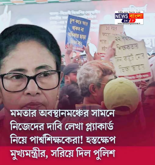 ধর্মতলায় মমতার ধর্না মঞ্চের সামনে বিক্ষোভ পার্শ্বশিক্ষকদের, প্ল্যাকার্ড হাতে বেতন বৃদ্ধির দাবি—হস্তক্ষেপ মুখ্যমন্ত্রীর, সরাল পুলিশ